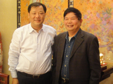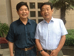 浙江天臺山梅氏宗譜 中國抗癌協會常務理事、河南省抗癌協會會長楊文獻教授和《百花散》傳人梅先生合影